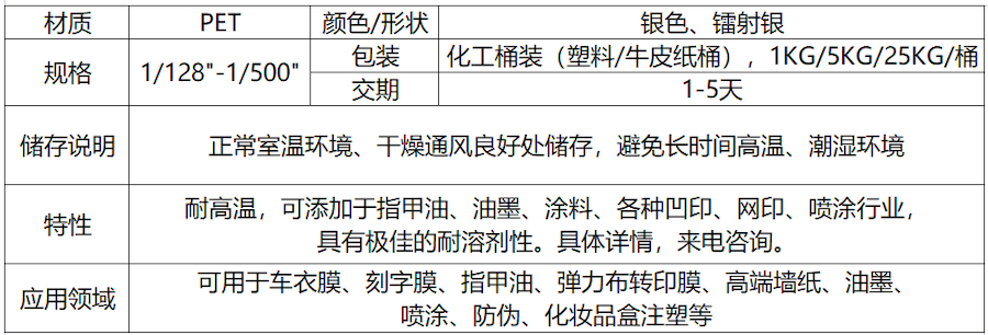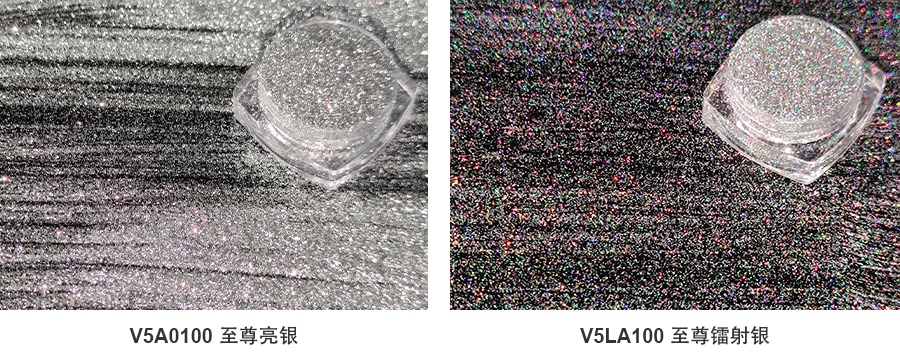 我司现推出新品零触感耐溶剂V5系列产品,包含银V5A0100和镭射银V5LA100两款。性能:耐高温,可添加于指甲油、油墨、涂料、各种凹印、网印、喷涂行...